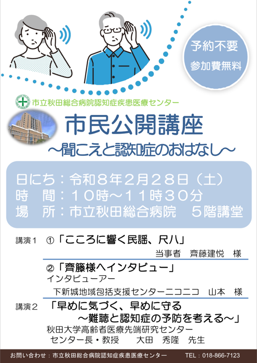 市立秋田総合病院 秋田県認知症疾患医療センター市民公開講座を開催します(令和8年2月28日開催)