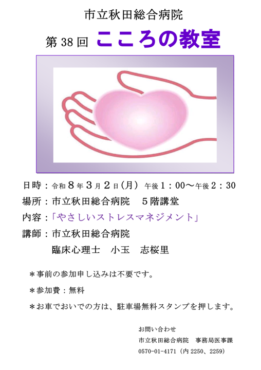 | 会場 | 市立秋田総合病院 5階講堂 直接会場へお越しください |