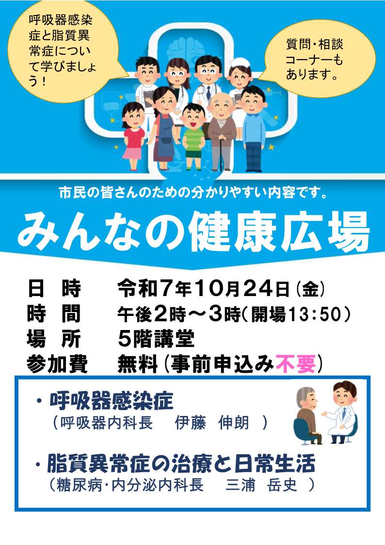みんなの健康広場 「呼吸器感染症」「脂質異常症の治療と日常生活」について(令和7年10月24日開催)