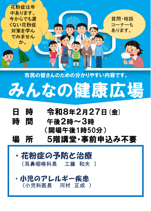 みんなの健康広場 「花粉症の予防と治療」「小児のアレルギー疾患」(令和8年2月27日開催)